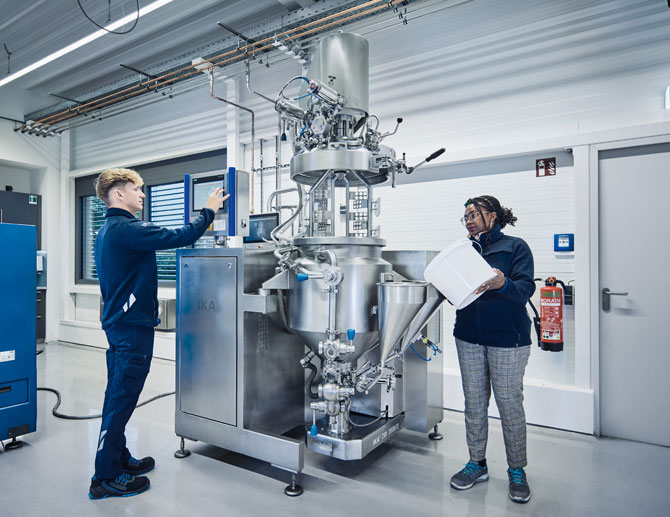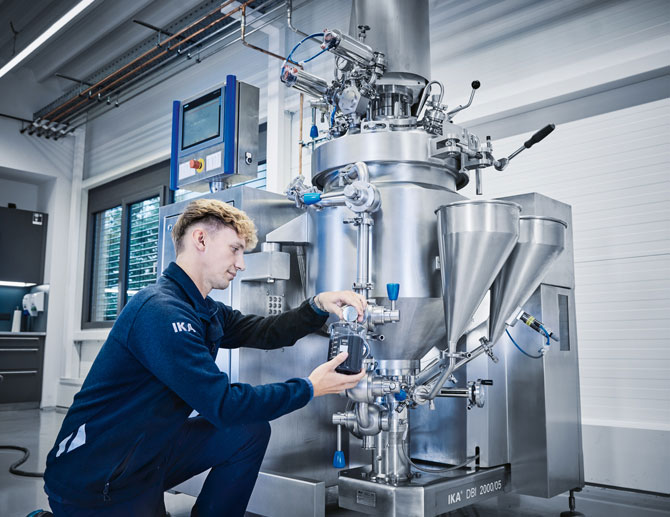 Originally a supplier for laboratories, pharmacies and hospitals, IKA quickly developed into a successful player on the international stage - both in laboratory and analytical technology and in process technology. In recent decades, the Process Technology division has developed into a leading manufacturer of mixing & drying technology. The Process Technology division of IKA offers turnkey solutions and state- of- the- art manufacturing options. IKA‘s solutions include: dispersing machines, homogenizers, stirrers, jet flow agitators, kneading machines, vacuum dryers as well as ready- for- use process plants, all being manufactured in IKA‘s outstanding high product quality. Consulting, design and realization of complex projects as well as proactive after- sales services complete IKA’s solution portfolio. Thanks to constant integration of innovative technologies, the high- quality machines and plants are used in many industries, such as the pharmaceutical, food, chemical, battery and bitumen sectors.