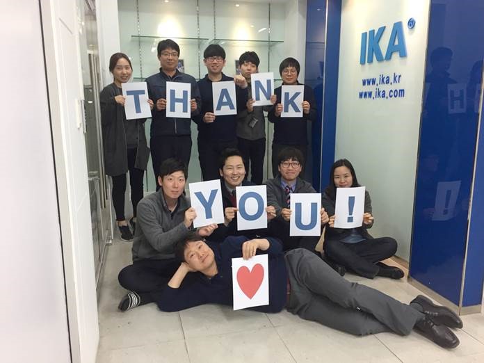Seoul, Korea - In order to be closer to customers, provide service locally and inform about new product innovations, IKA has opened its business in Seoul, Korea. Our team, under the direction of YG Hong, celebrated its first milestone. All IKA offices sent video greetings to Korea and the team in Korea said “Thank You” – not only to the colleagues, but also to its partners and customers by sending this photo. We are excited about the future.