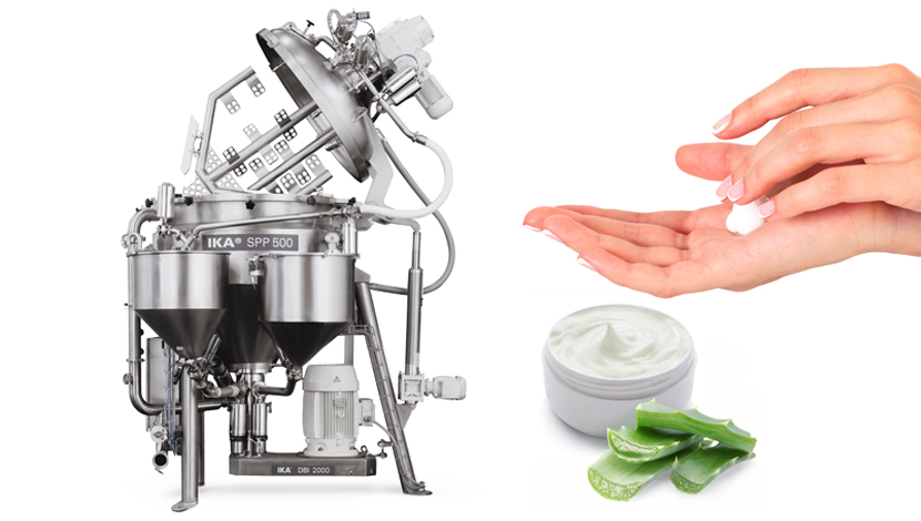 Without long conversion times or costly adjustments, an entire product range from creams to ointments to lotions can be produced on a very flexible plant. The SPP plant homogeneously mixes both liquid and solid product components into high-quality emulsions and suspensions - both at low and high viscosities.