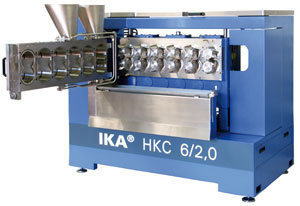 The IKA continuous kneading and extrusion machine CONTERNA was developed for the processing of high viscous products such as plastic compounds with a high percentage of filler. In the plastics, food and chemical industries it is used for the production of rubber and plastics, masterbatches, adhesives, sealing compounds, rubber and other products.